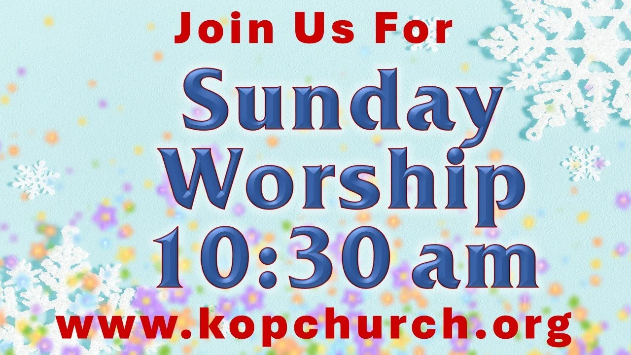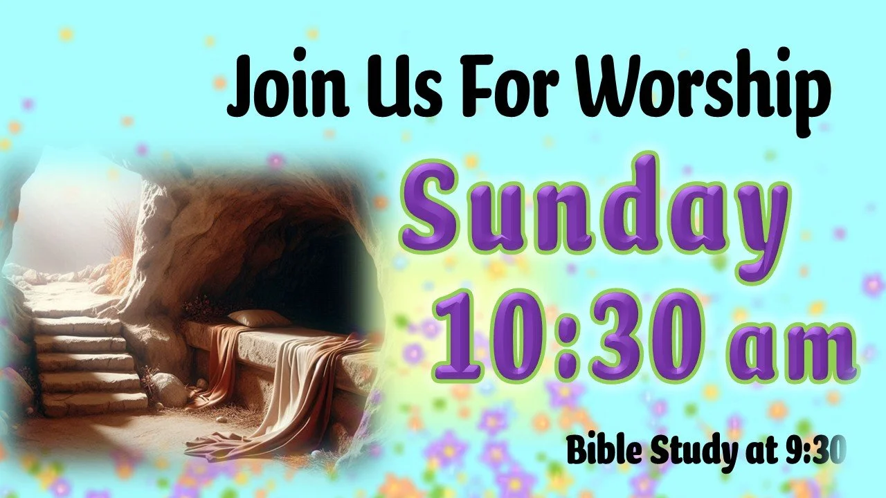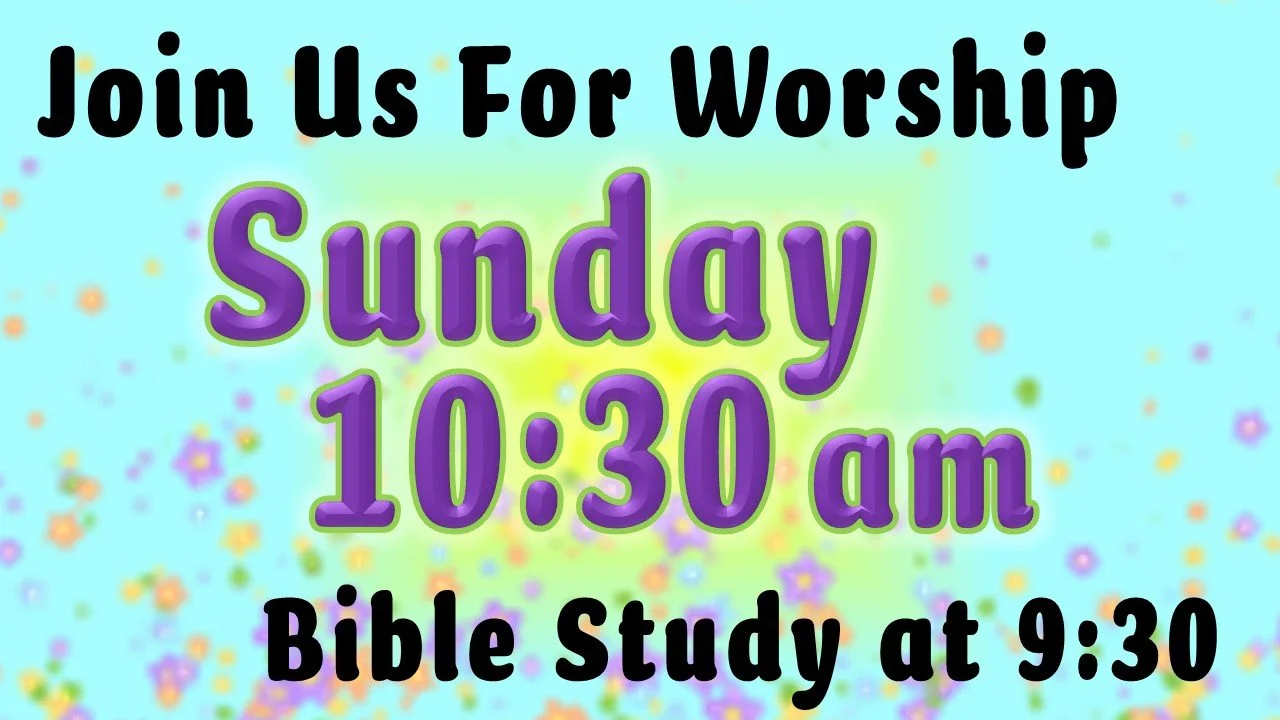 We invite you to join us on Sundays for worship at 10:30 am. We also have Bible Study for all ages starting at 9:30 am.